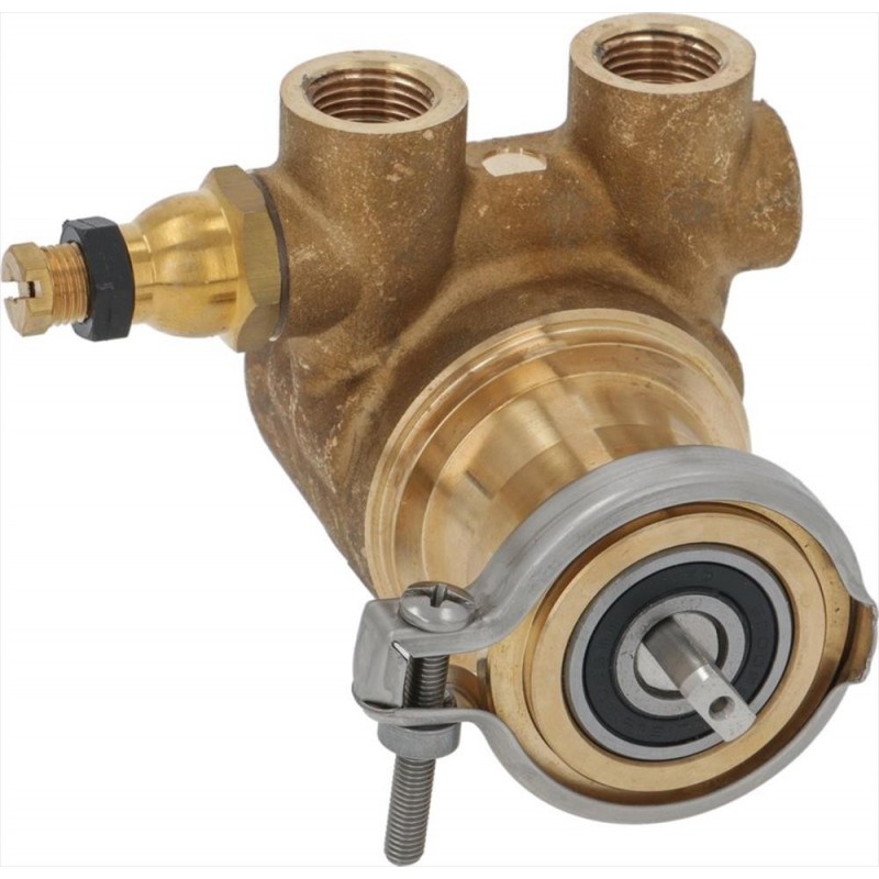 attacco a fascetta|portata 150 litri/h|con by-pass bilanciato|raccordo ø 3/8 conico NPT|omologata NSF|formato STANDARD|ingombro senza perno 82,5 mm|POMPA VERSIONE ECO-BRASS|realizzata in ottone CW510L (OT57)|a basso contenuto di piombo <=0,25%