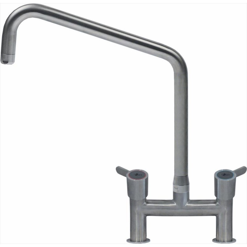 versione con manopole a leva|vitoni a dischi ceramici ø 3/4 con rotazione 90°|canna erogazione ø 25x300 mm altezza 330 mm|attacchi ø 3/4M - dima di foratura ø 29 mm|interasse di fissaggio 153 mm
