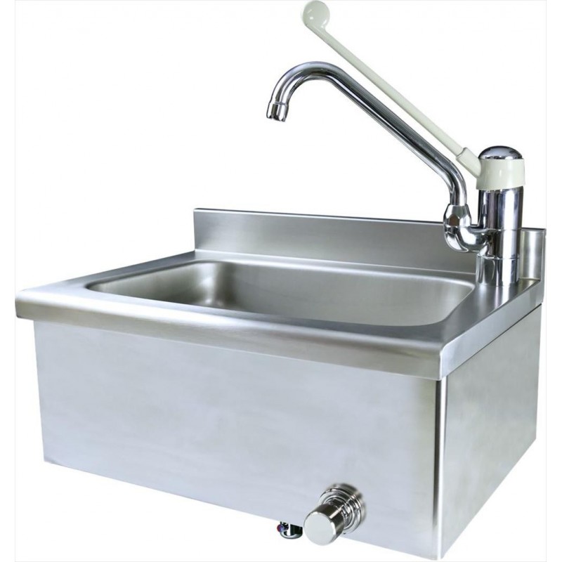con miscelatore a ginocchio|Premendo il pulsante si ottiene l’erogazione |dalla bocca orientabile ø 20 mm anche se la leva|del miscelatore monocomando è in posizione |di chiuso|canna erogazione ø 22x260 mm|dimensioni 500x350x205 mm|