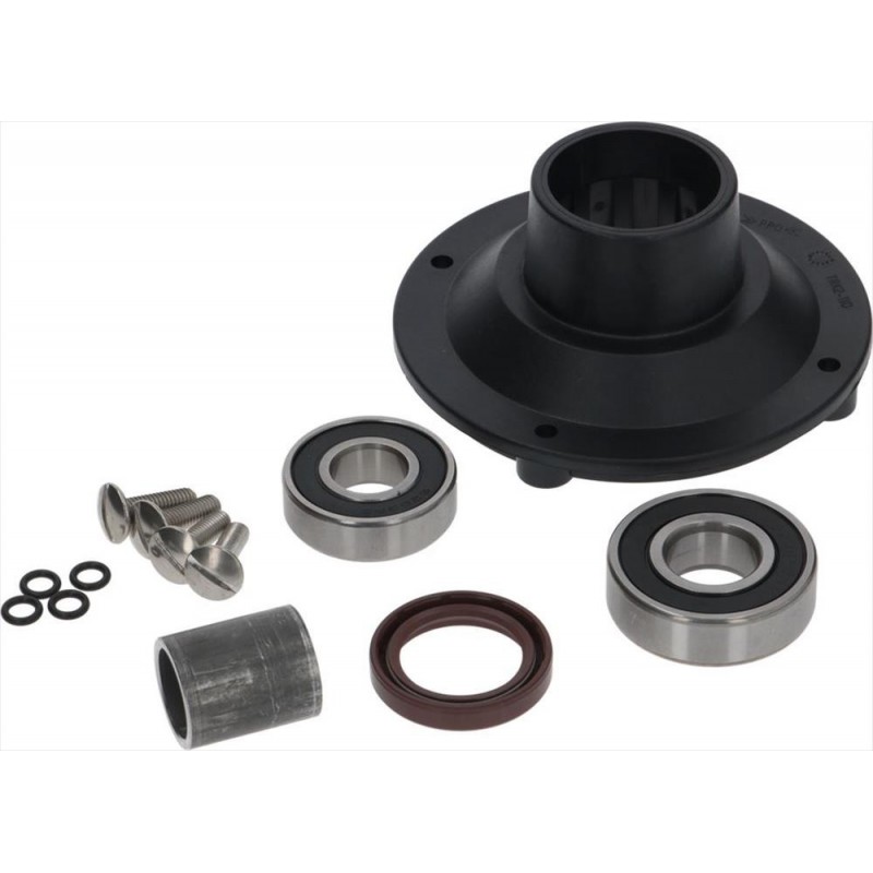 il kit comprende:|1 supporto ø 114 mm - 1 distanziale ø 25x30 mm|1 cuscinetto 6204 2RS - 1 cuscinetto 6203 2RS|1 anello di tenuta 40x28x7 mm - minuterie varie|||