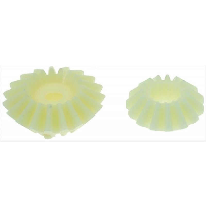 ingranaggio grande:|ø foro 8 mm|ø 45x18 mm - numero denti 19|ingranaggio piccolo:|ø foro 15 mm|ø 35x14,5 mm - numero denti 15